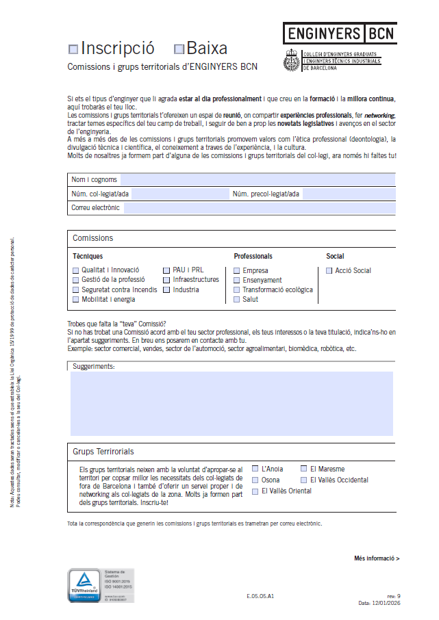 Inscripció a les comissions