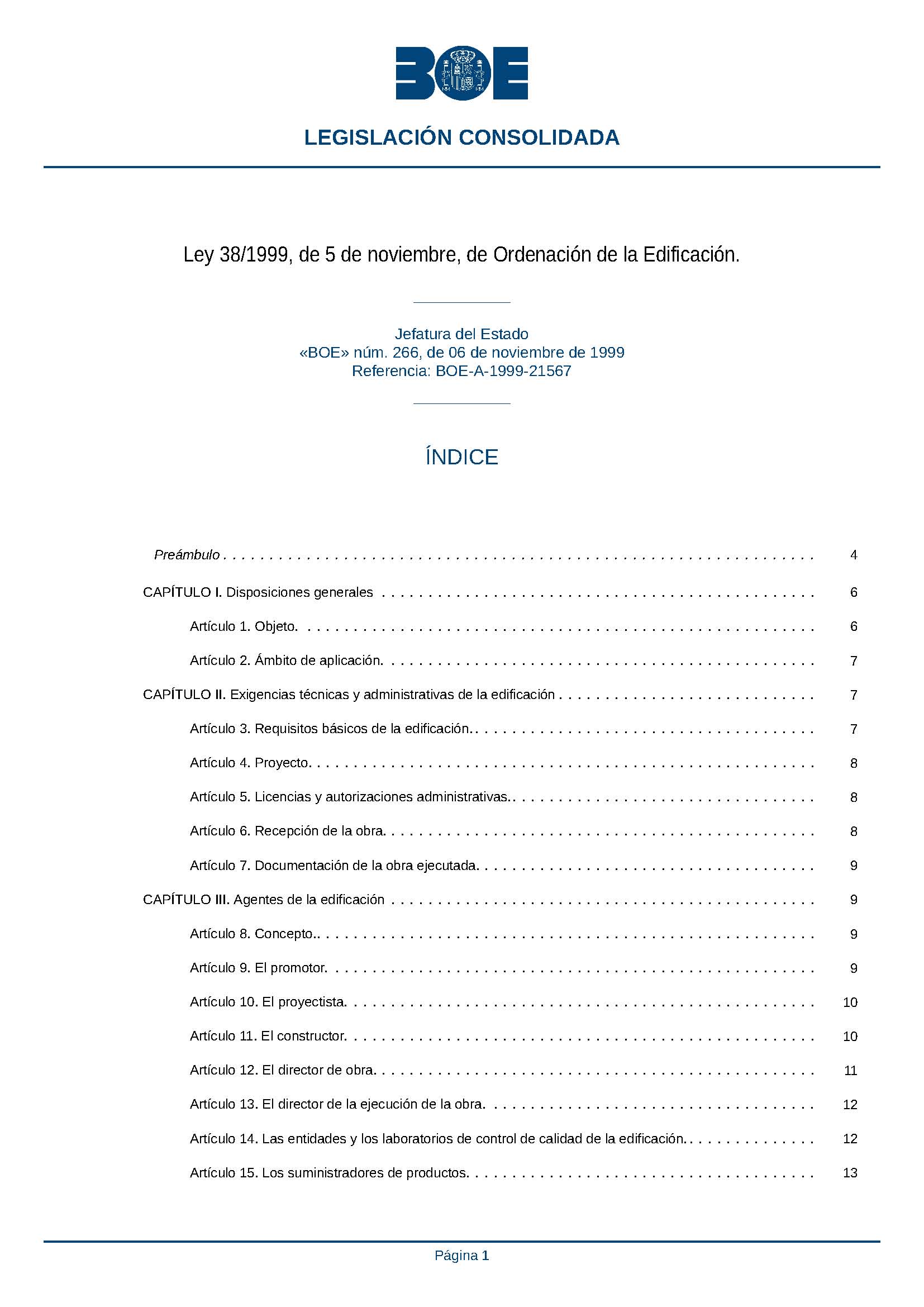 Llei 38/1999, de 5 de novembre, d’Ordenació de l’Edificació